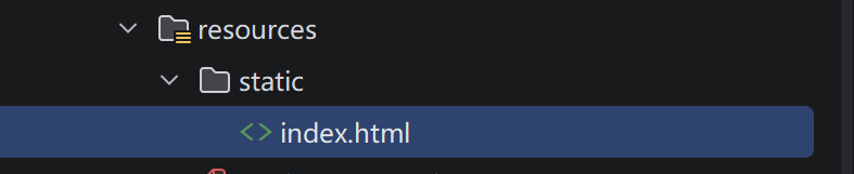 在resource中新建一个文件夹static,创建index.html,要注意的是文件夹必须是static,否则springboot无法加载index.html