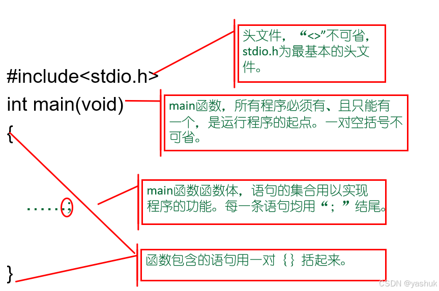 C程序由一个或多个函数构成,其中必定有一个且仅有一个main( )函数,不管这个函数处于何种位置,程序皆从它起始执行,main( )函数能够调用别的函数,然而别的函数无法调用main( )函数。