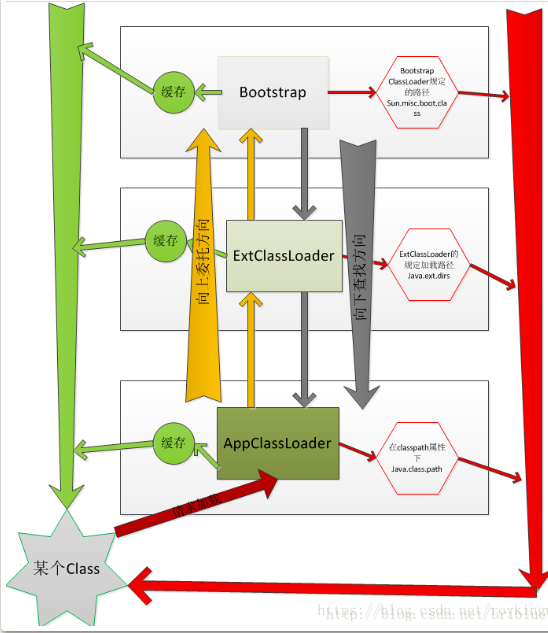 - 双亲委派机制,即向上委托查找,向下委托加载。