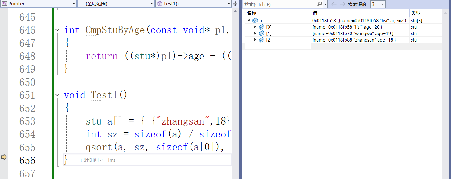 对我们定义的这个结构体来说,可以通过名字来比较,也可以通过年龄来比较
