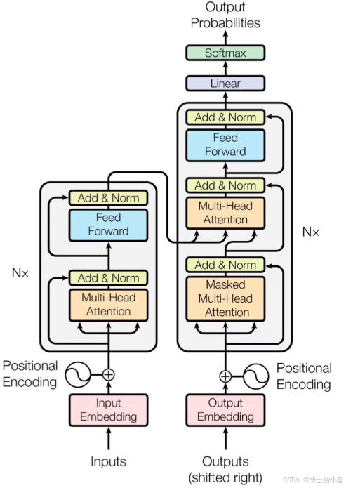 - 残差连接与层归一化(Add & Norm):每个子层后均有,用于缓解梯度消失、稳定深层训练。
