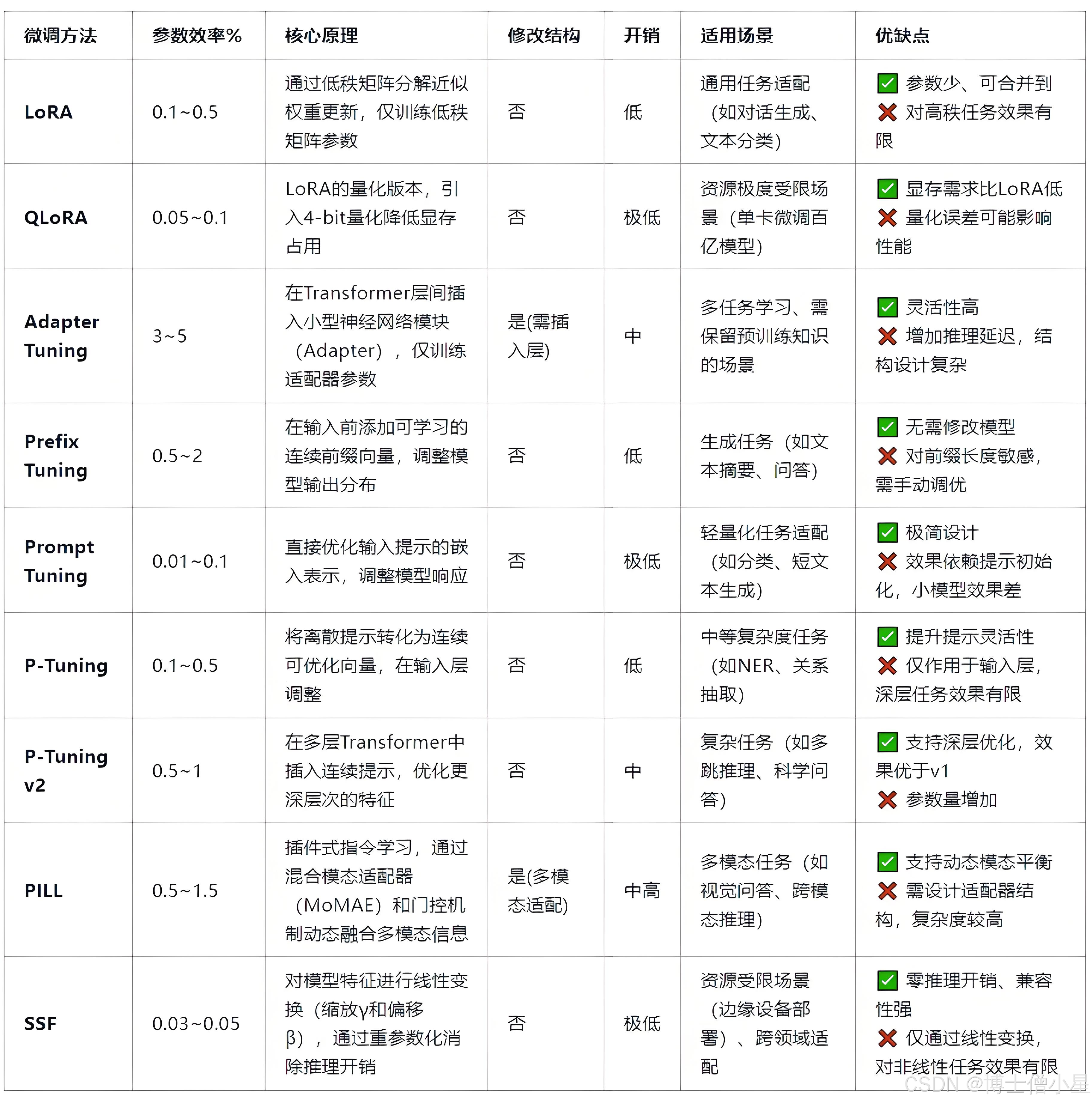 ✅ 所有 PEFT 方法,都是在上述模块的特定位置插入可训练参数或模块。下文将逐一锚定其精确坐标。