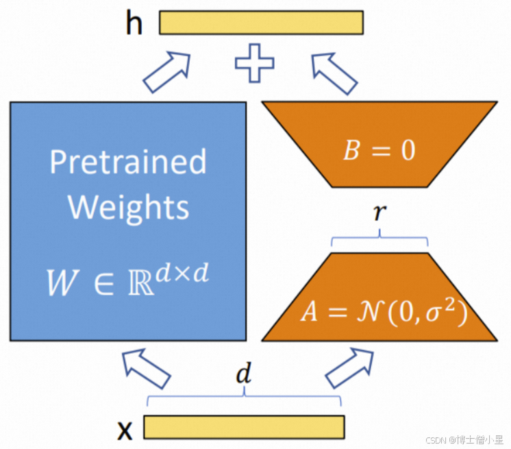 AB(秩为r的近似更新); - 叠加至原始权重。
