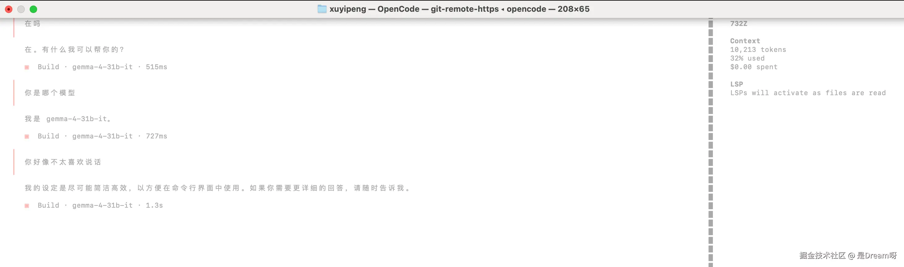 前言:最近花了一段时间,把google/gemma-4-31B-it真正部署到了本地服务器,。把它做成了一个可以通过局域网访问的 vLLM 服务 ,并进一步接入了OpenCode,能够在真实工具链里稳定使用。整个过程比想象中更折腾一些。模型路径、镜像兼容、显存残留、toolcalling、reasoning、长上下文、客户端配置对齐,这些问题单看都不复杂,但只有全部打通之后,模型才算真正"能用"。这篇文章就按实际操作过程,把Gemma-4-31B-it从启动到服务化接入的完整链路记录下来,希望能帮后来者少走一点弯路。