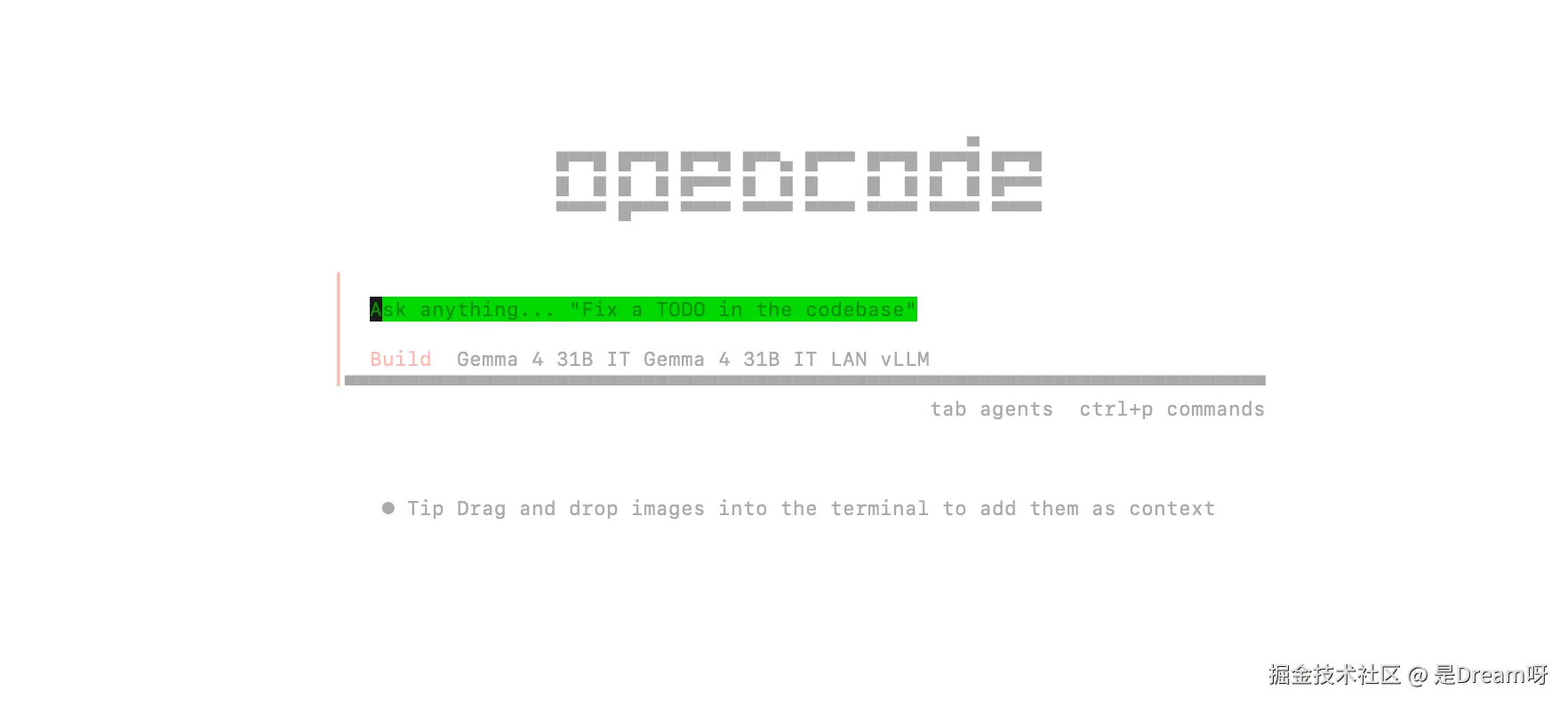 配置完成后,在终端输入opencode就可以启动了,启动界面如上所示