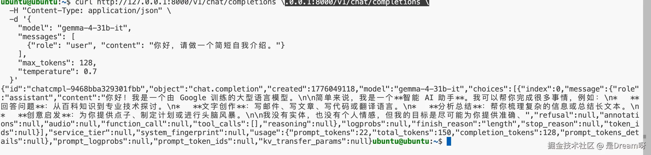 回头看这次 google/gemma-4-31B-it 的部署,最花时间的从来不是敲命令本身,而是不断把那些看起来不大的问题一个个补齐,也正是这些细节,决定了一个模型到底只是能启动,还是真正能使用。