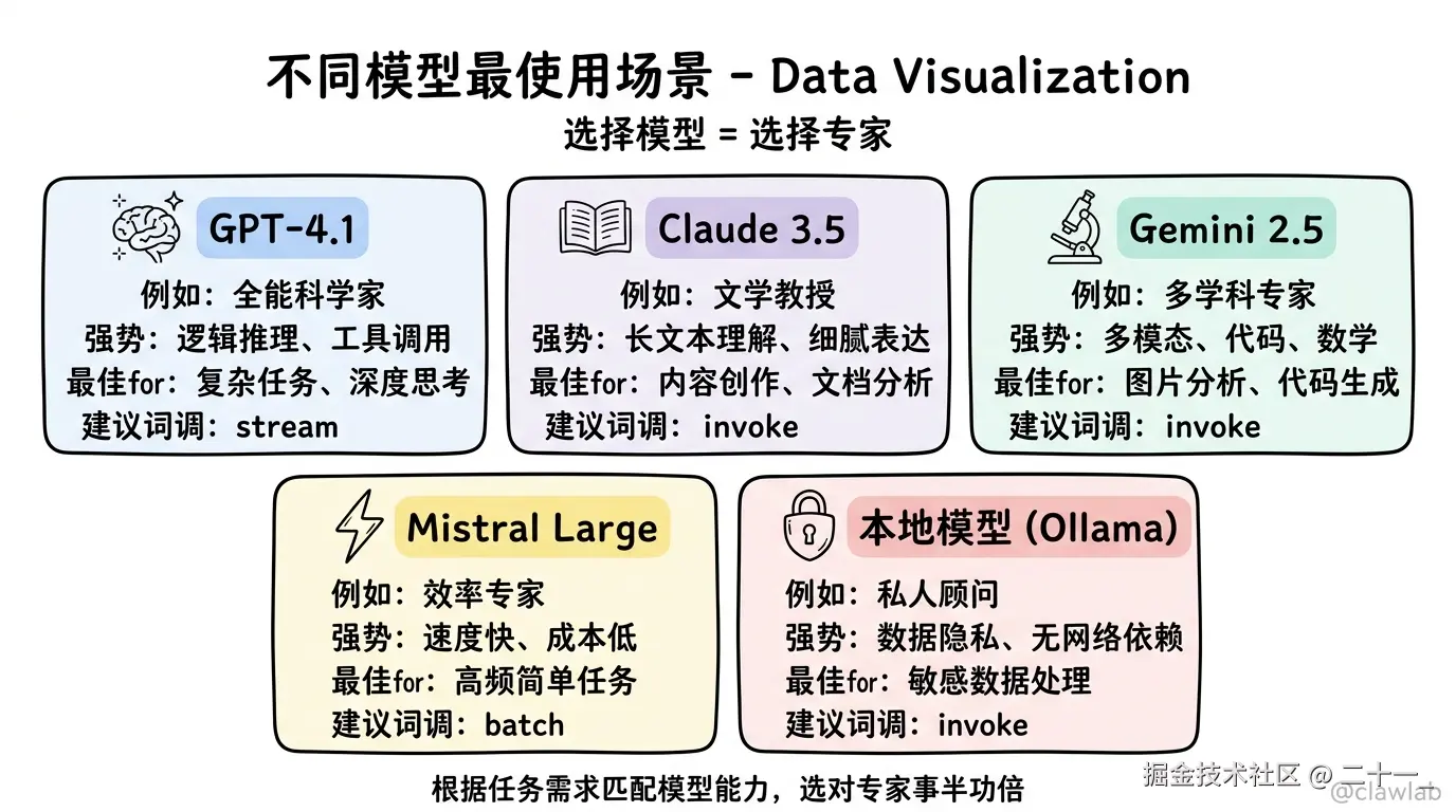 记住:选择合适的模型,就像选择合适的专家**。不同的任务需要不同的专业知识,模型也一样。了解模型的能力边界,才能让 AI 发挥最大价值!🚀