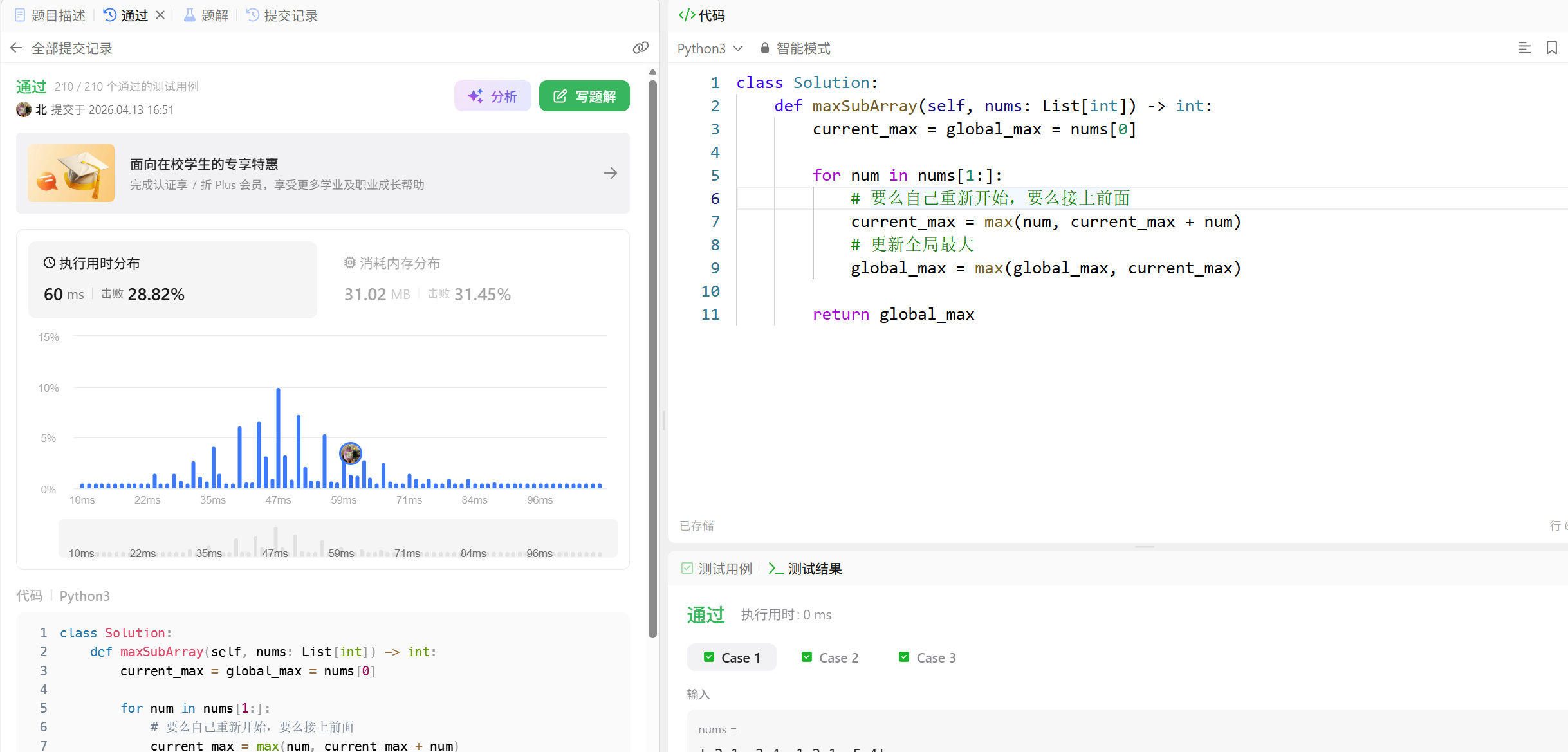 题目链接 53. 最大子数组和 - 力扣(LeetCode)