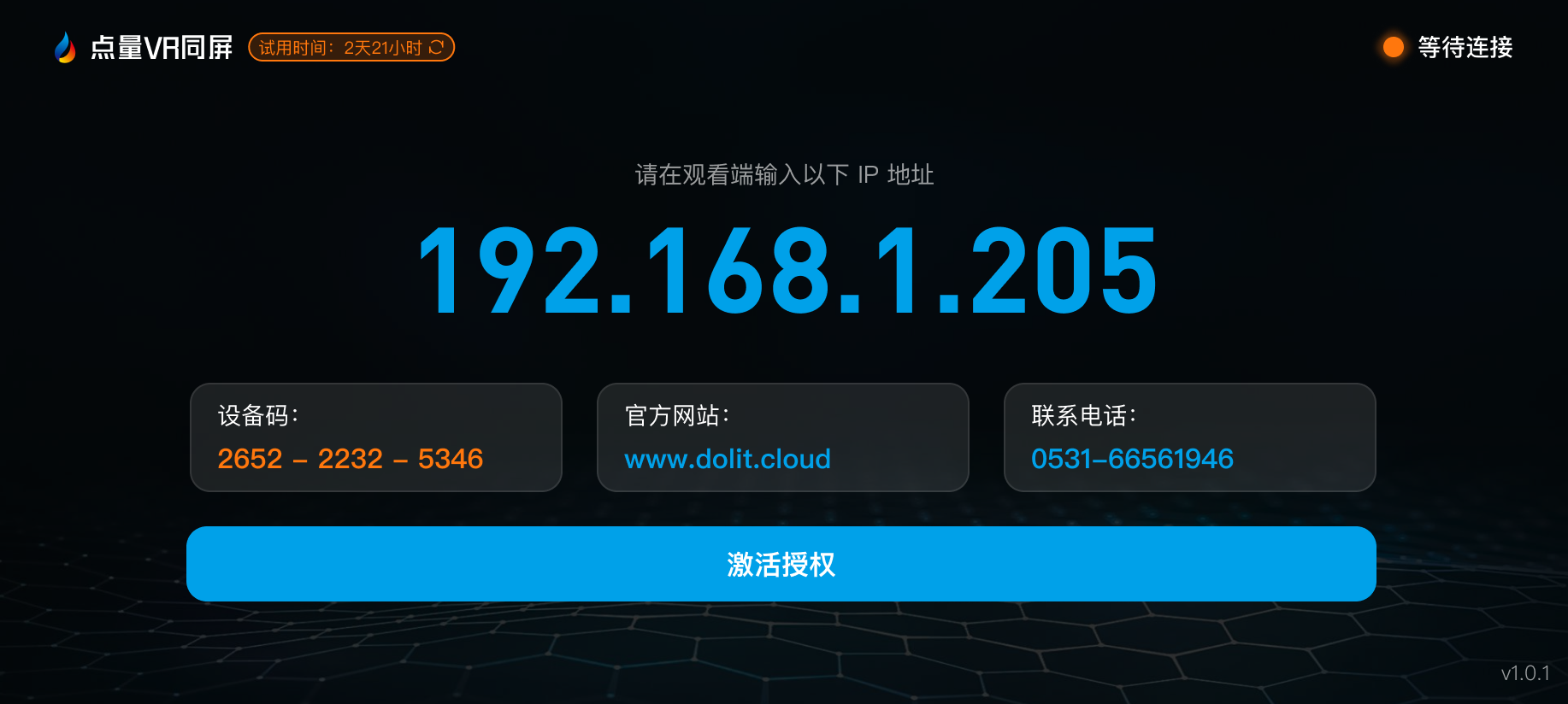 通过上文我们知道VR同屏共享软件有两个部分,分别安装在VR眼镜和瘦终端或者电脑中(可以通过U盘/ADB进行安装),那具体该如何使用呢?该软件的使用非常简单,在VR眼镜中安装服务端APP后即可看到本机的IP地址,将该IP地址输入到用户端APP中即可建立连接。且会有最近几次连接的记录,即使换了其他的设备也可以快速连接到原来用过的设备。