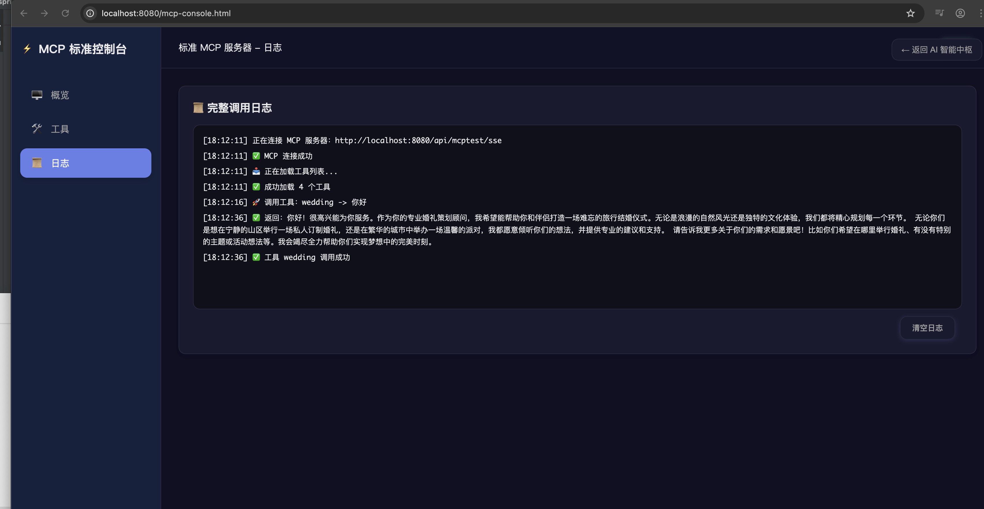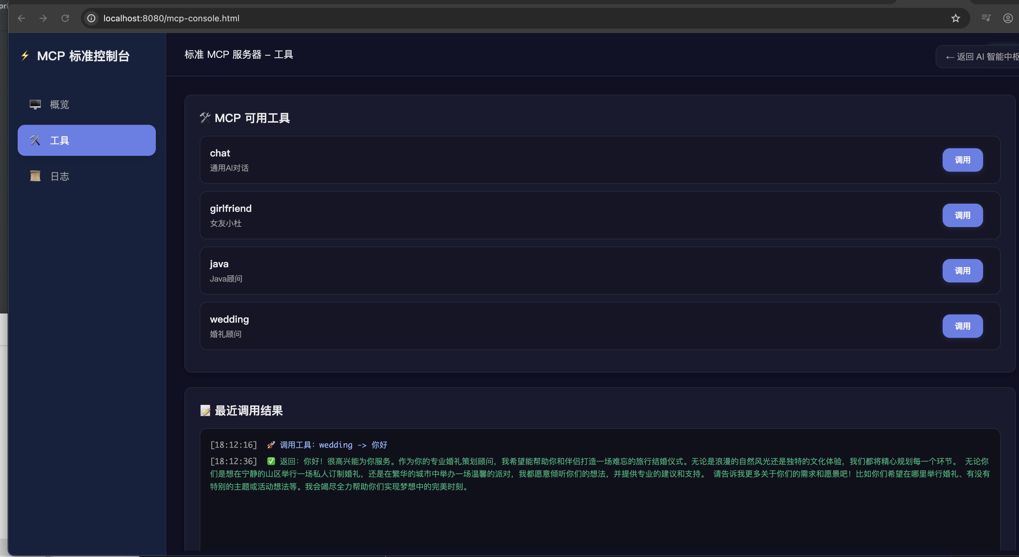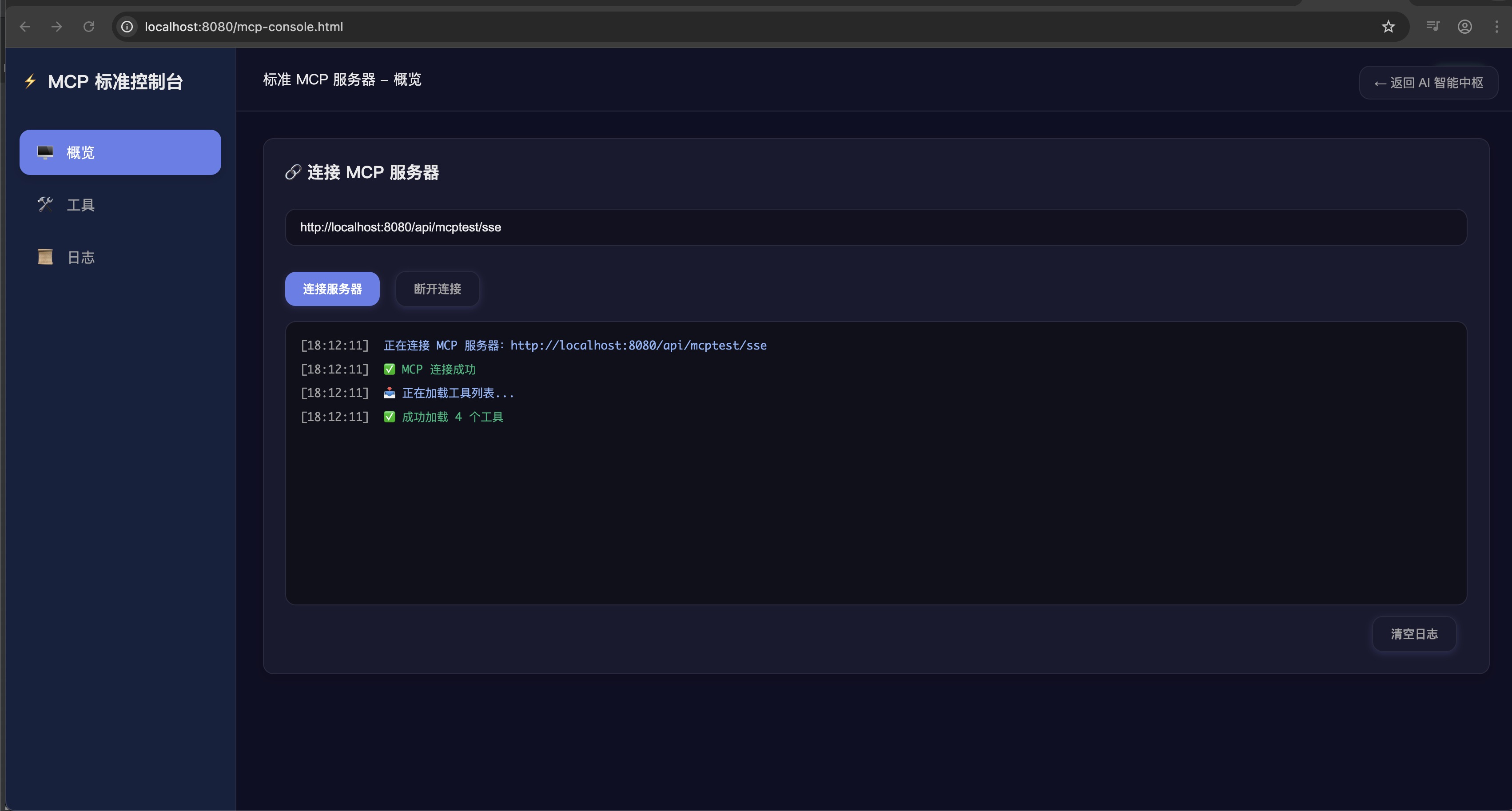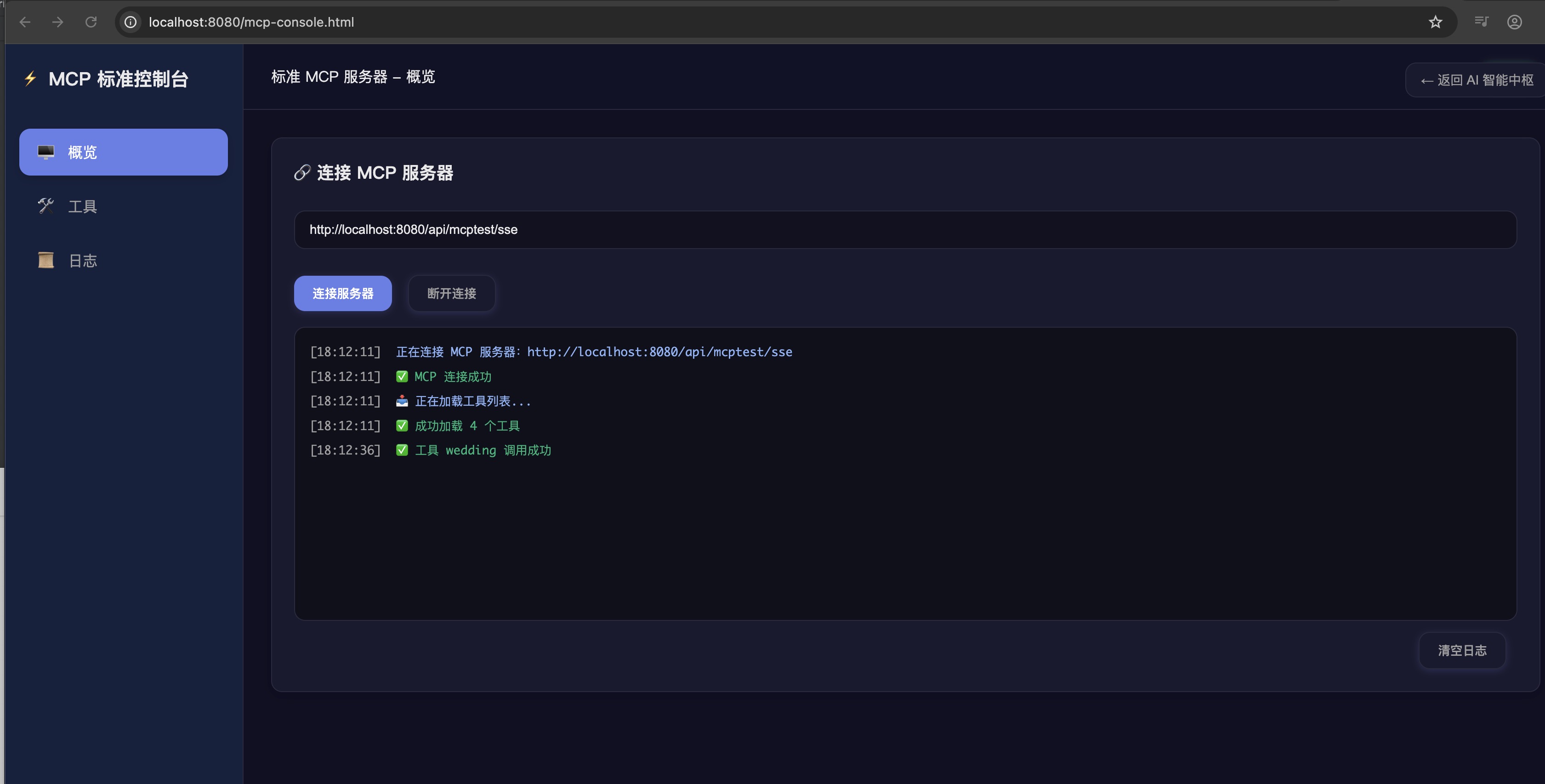 MCP 标准控制台:http://localhost:8080/mcp-console.html