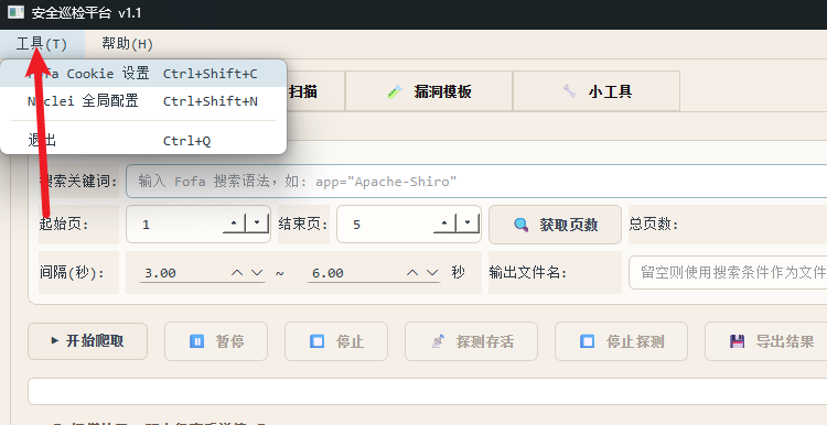 - 支持图形化配置 nuclei 路径、模板目录、输出目录