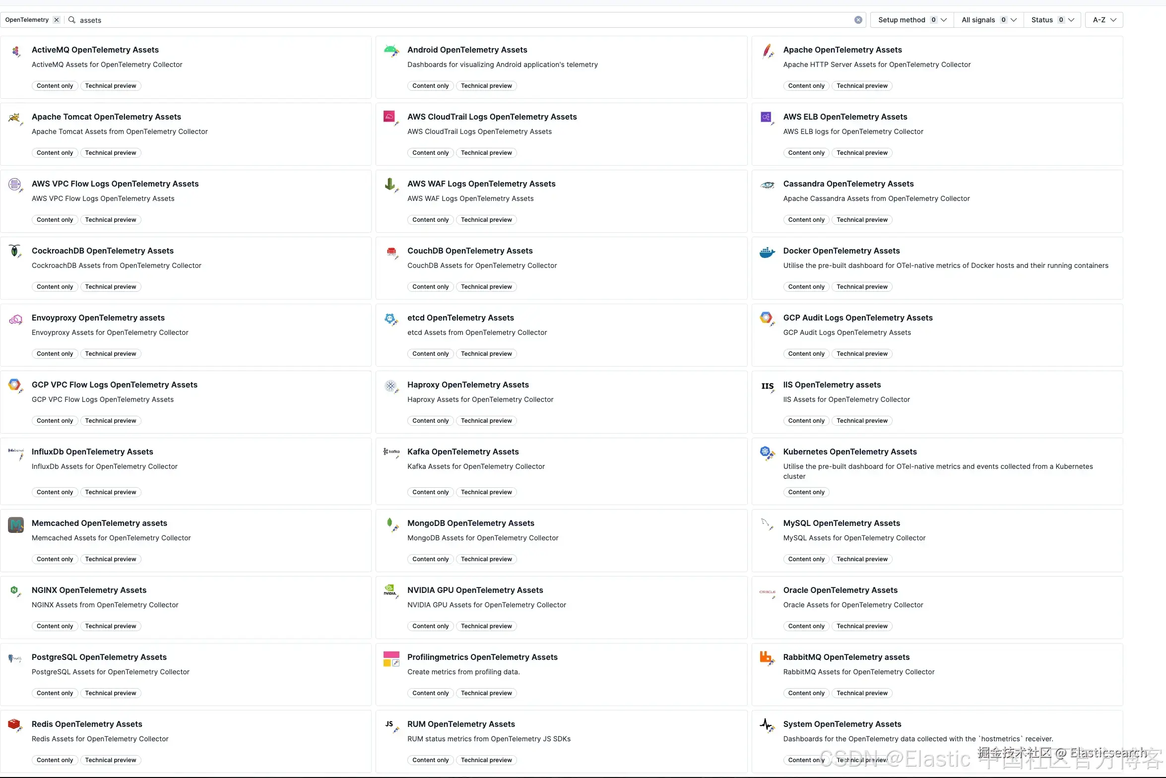 Elastic 传统的基于 Beats 的集成通常会将数据采集和可视化打包在一起 ------ 当你启用某个功能时,就会立即获得精心设计的仪表板和告警。随着 Elastic 向 OpenTelemetry 优先的架构演进,这一理念被延续下来,但模型变得更加清晰。