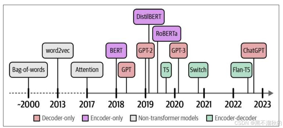 语言人工智能的发展历史,其实就是不断尝试用各种方法和模型,去"表示语言"和"生成语言"的过程,这些发展如下图所示: