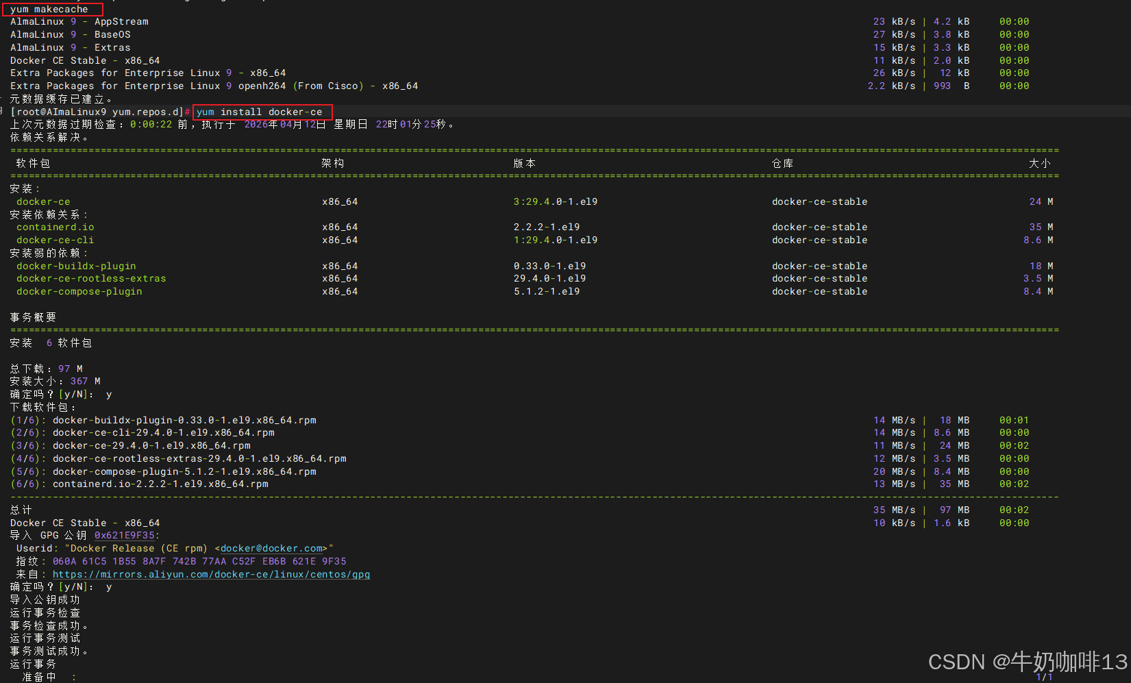 #使用yum在线安装docker------以AlmaLinux9为例