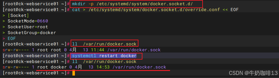 #解决普通用户添加到docker用户组后,使用docker报错"permission denied while trying to connect to the docker API at unix:///var/run/docker.sock"方法(也就是说【/var/run/docker.sock】文件的属主必须是root,属组是docker才正确)