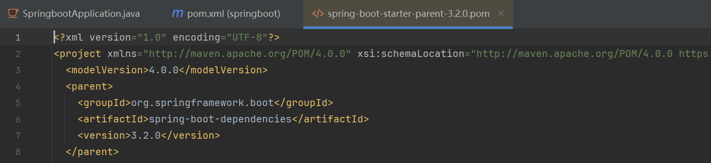 父工程指定版本号之后,就会自动引入和所指定版本号对应的依赖,创建的SpringBoot项目,会继承SpringBoot父工程