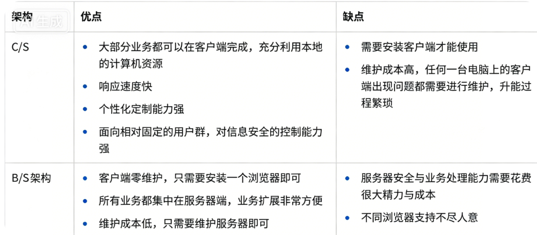 目前来说,用户对PC端应用的开发结构模式主要分为C/S架构和B/S架构.