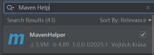 当出现jar包冲突的时候,我们去观察pom.xml文件可能会不方便找到哪个jar包冲突,这时候可以使用Maven Help插件.