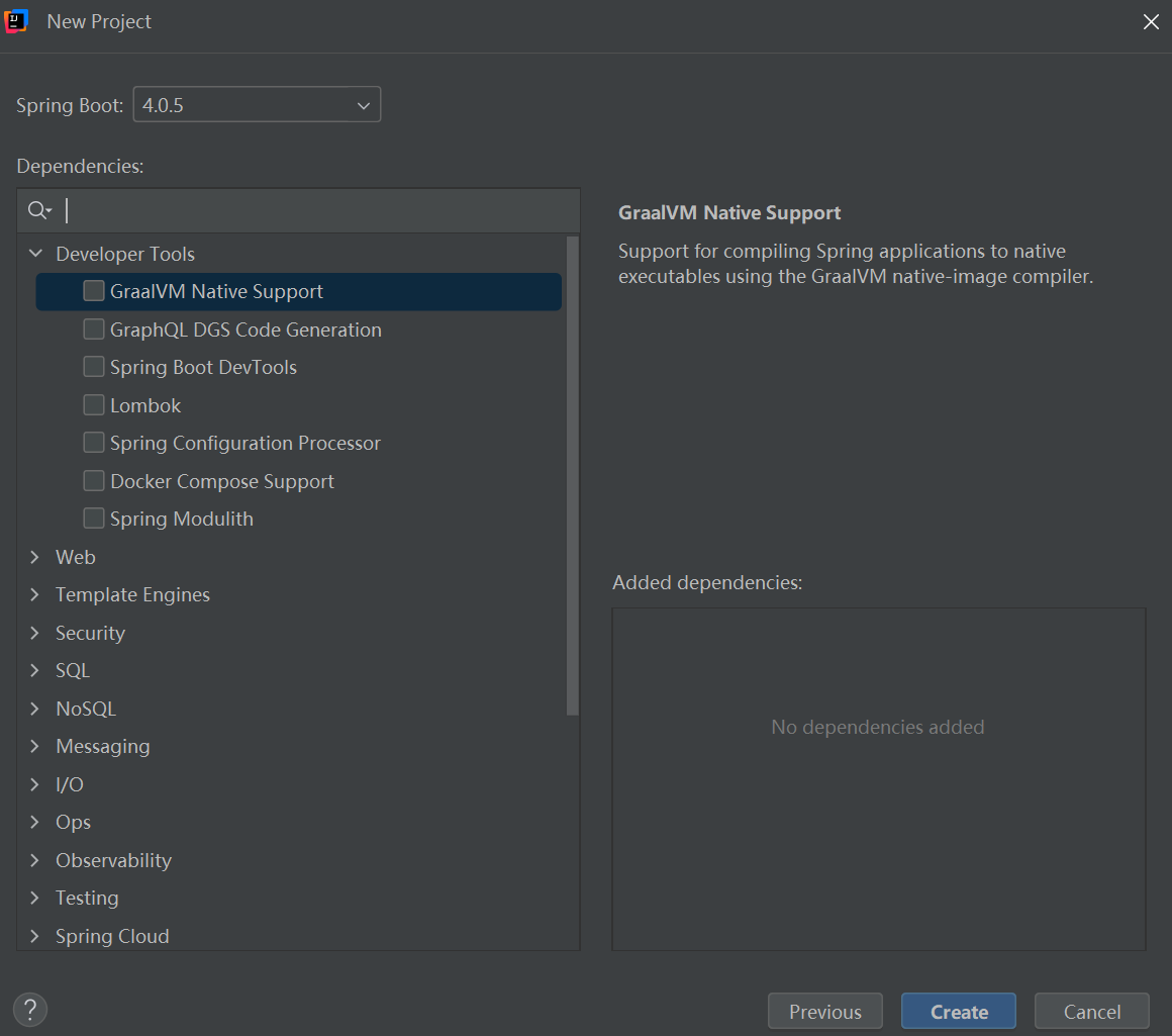 选择Maven,选择YAML,剩下的可以不需要改,然后Next.下面这个界面就是选择需要的一些依赖了,选好之后IDEA会自动在创建的pom.xml中添加这些依赖.