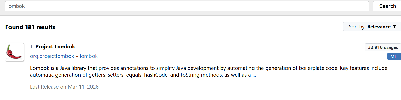 就好比上面那个lombok依赖,我们就可以去网站找到.
