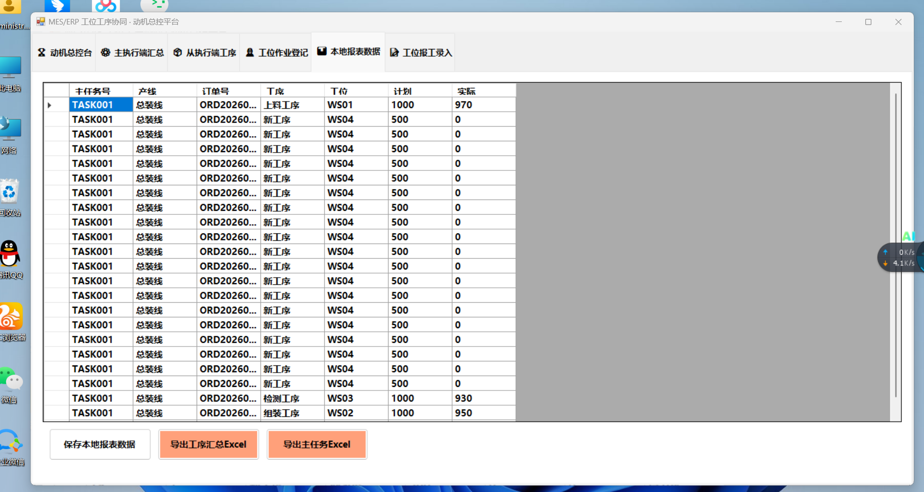 整体采用:主控总平台 → 主子执行端 → 工位工序端 三级架构本地 SQLite 文件数据库 + 业务委托事件 + 多 Tab 界面 + 可编辑本地报表