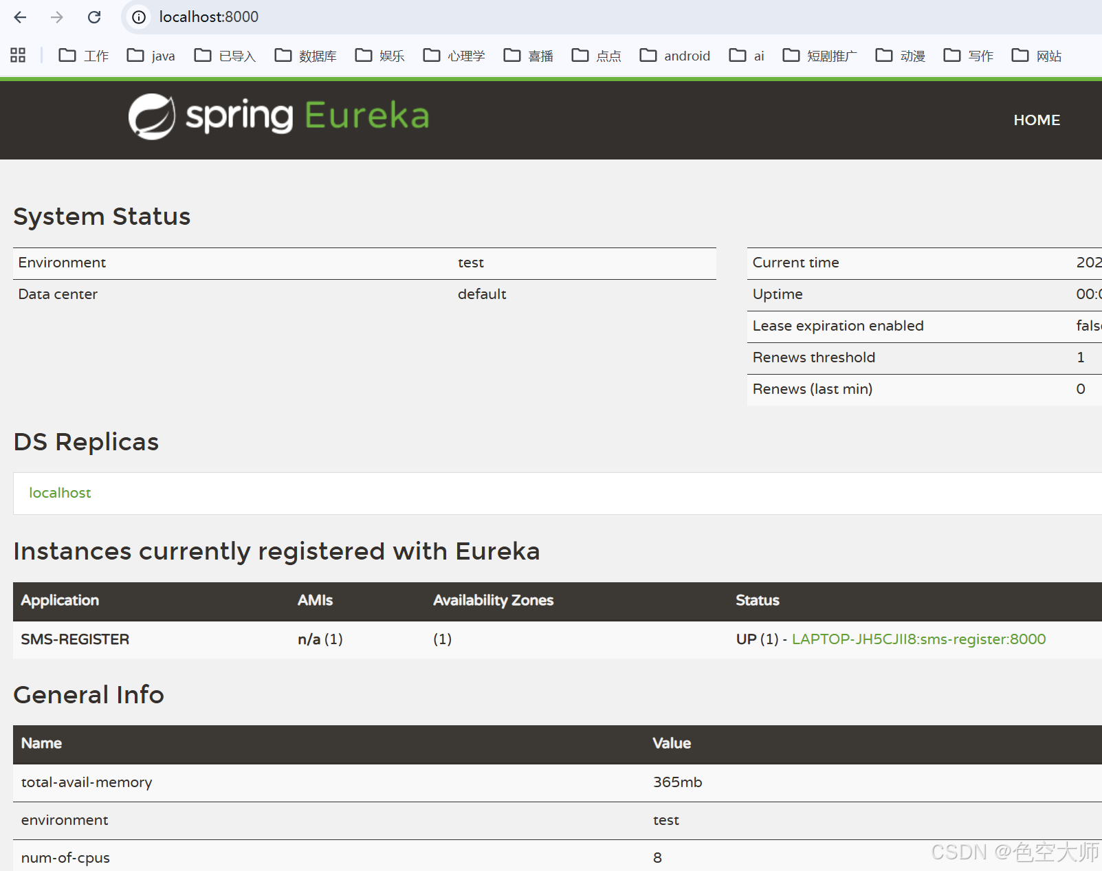 defaultZone: http://localhost:8000/eureka