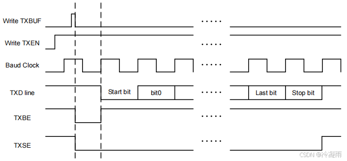 也可以先置位TXEN,再写入TXBUF,时序图如下: