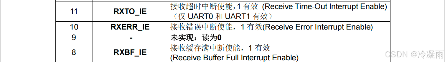 - 在接收过程中,软件从RXBUF读取数据,在移位寄存器接收到数据后,就会自动向RXBUF写入。因此只要移位寄存器里面有数据,且帧格式正确,那么其一定会向RXBUF写入,并触发 接收缓冲区满 标志,使能中断的话就会进入中断服务函数。因此不需要特别设置 接收移位寄存器空 的标志。