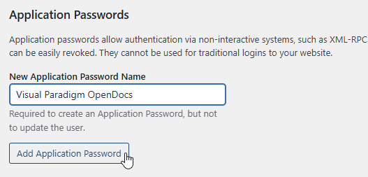 创建一个名为"Visual Paradigm OpenDocs"的新应用程序密码: