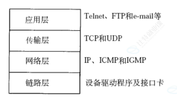 TCP/IP通讯协议采用了五层的层级结构,每一层都呼叫它的下一层的所提供的网络来满足自己的需求