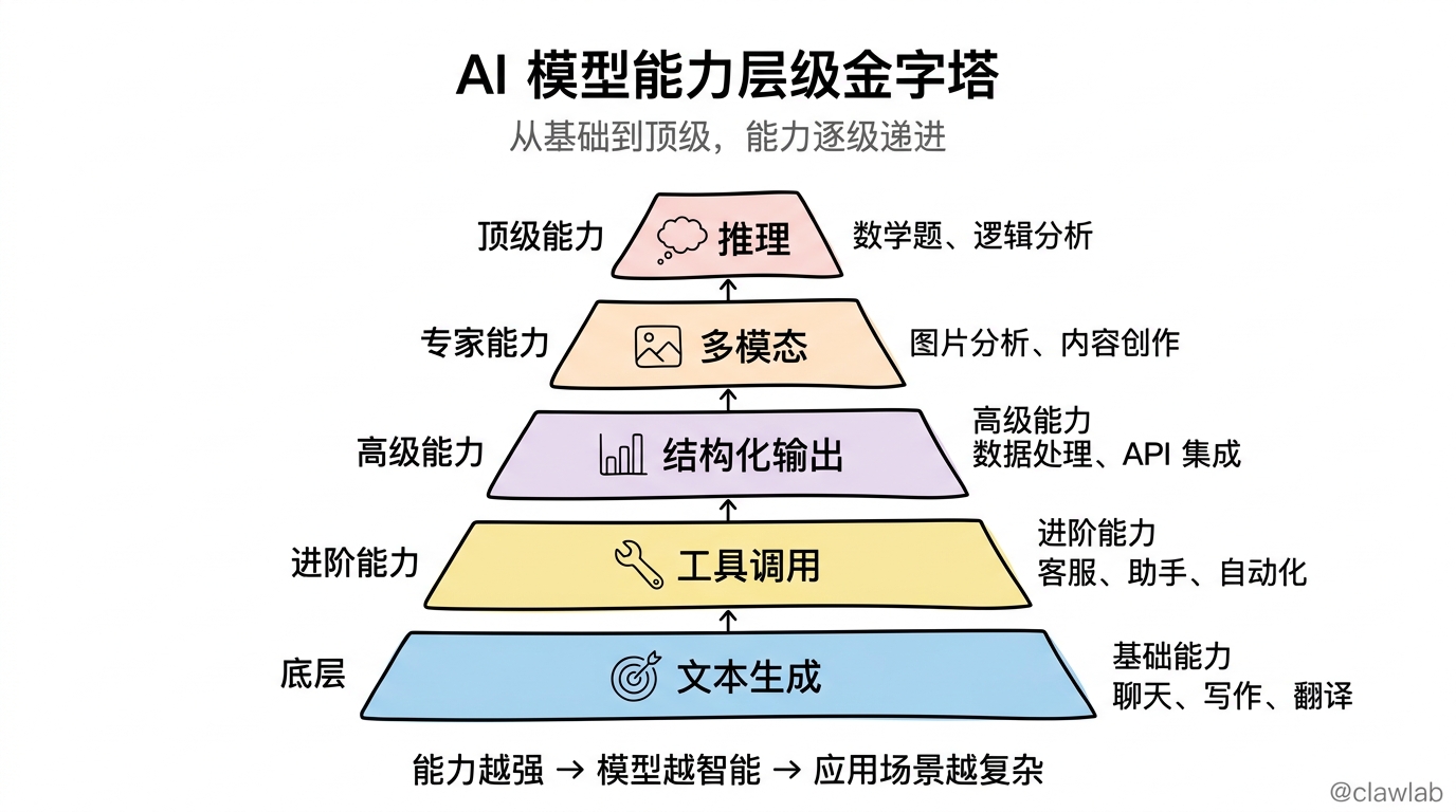 | 能力扩展 | 有限 | 工具调用、多模态、推理 |