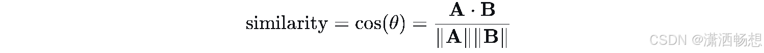 \text{similarity} = \cos(\theta) = \frac{\mathbf{A} \cdot \mathbf{B}}{\|\mathbf{A}\| \|\mathbf{B}\|}
