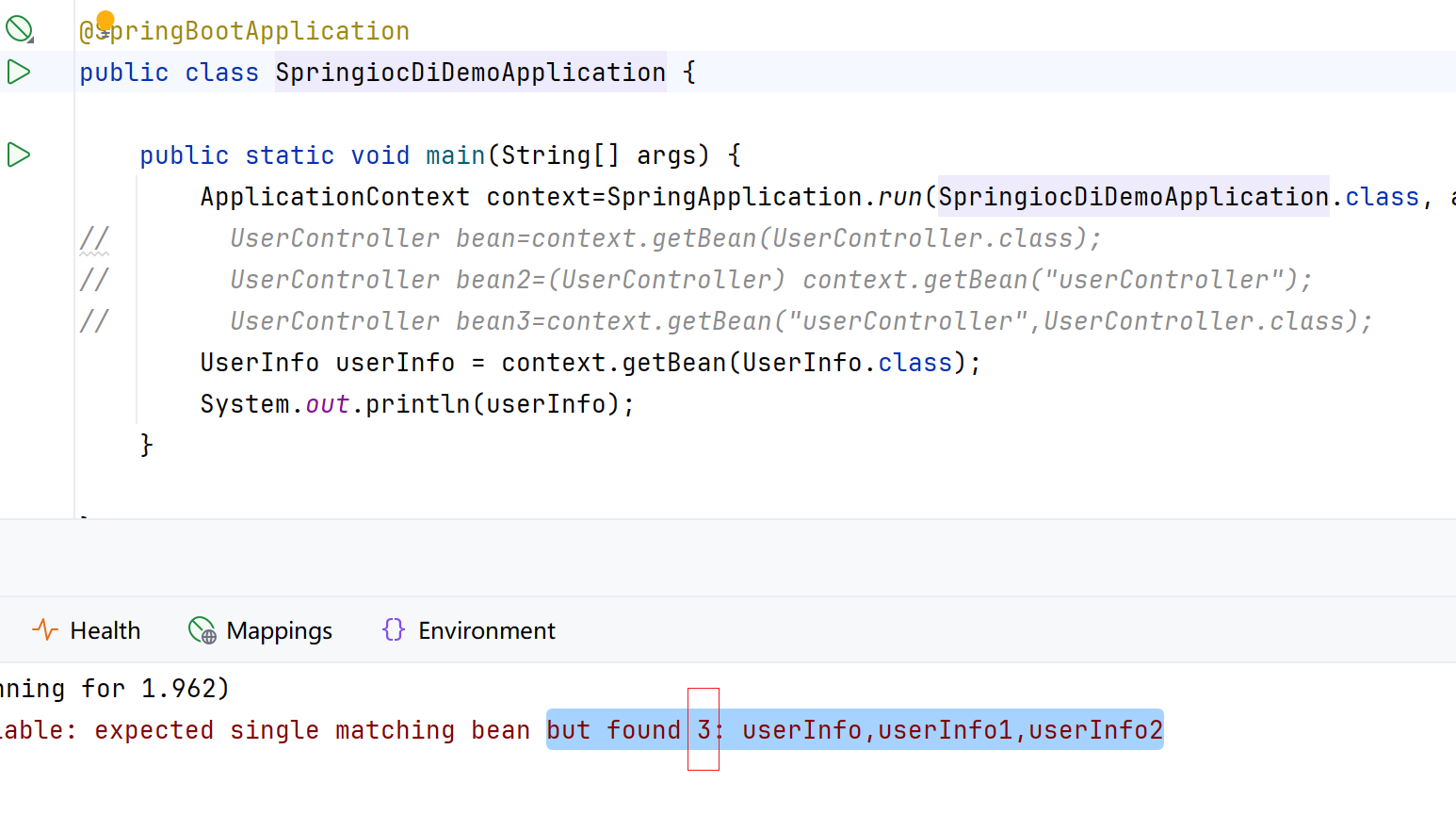 我们把这3个返回值类型为同一个的对象都交给了Spring管理,所以按照类型名去取对象,三个相同你告诉我咋取?这就是问题的根源