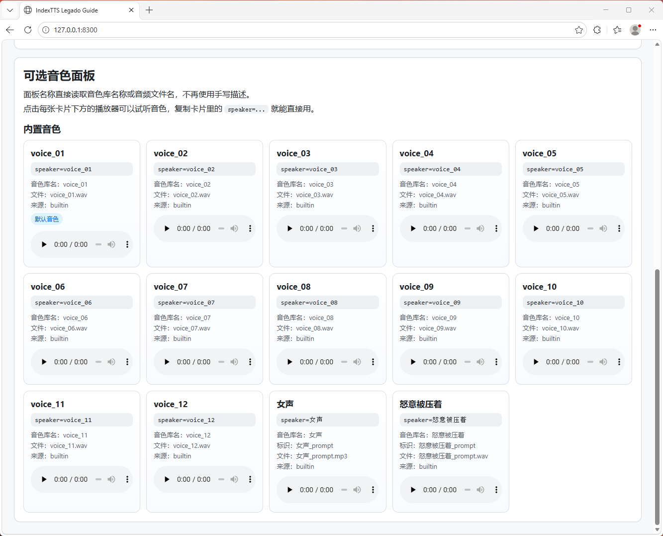 可直接复制 speaker=... 进行调用