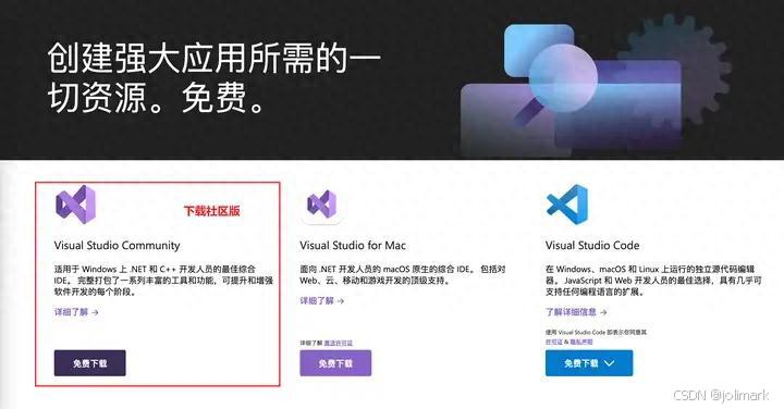 前往这个链接,https://visualstudio.microsoft.com/,去进行Visual Studio安装包的下载。