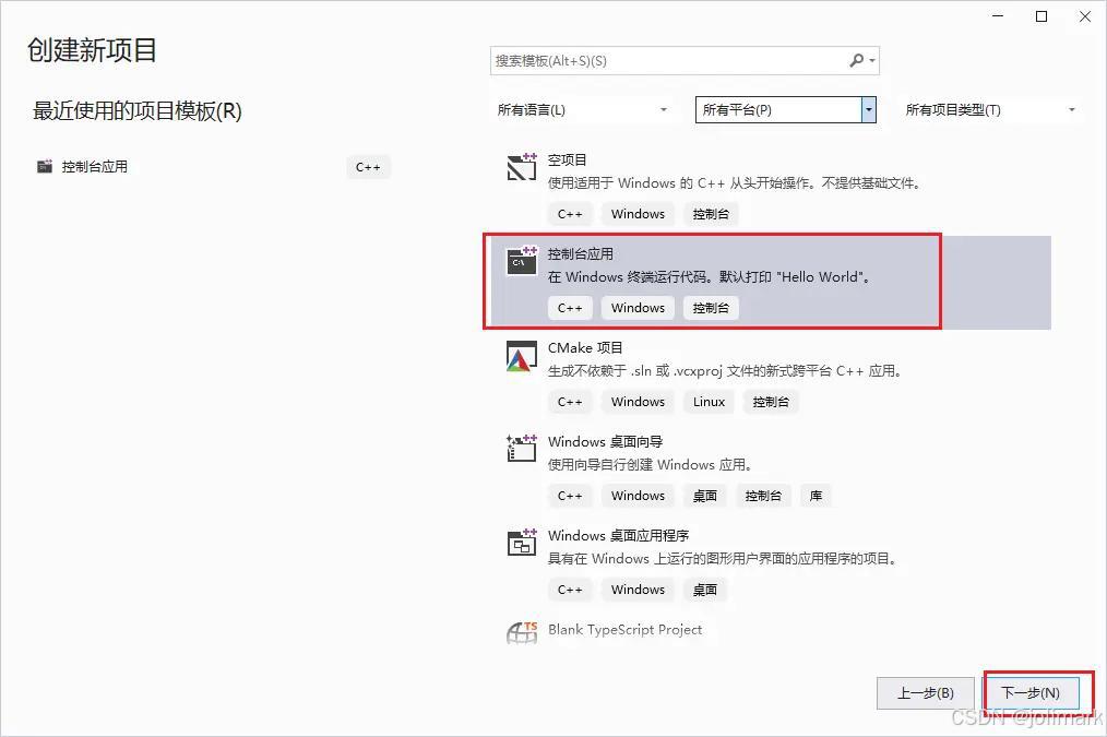 - 选择创建【控制台应用】点击下 一步