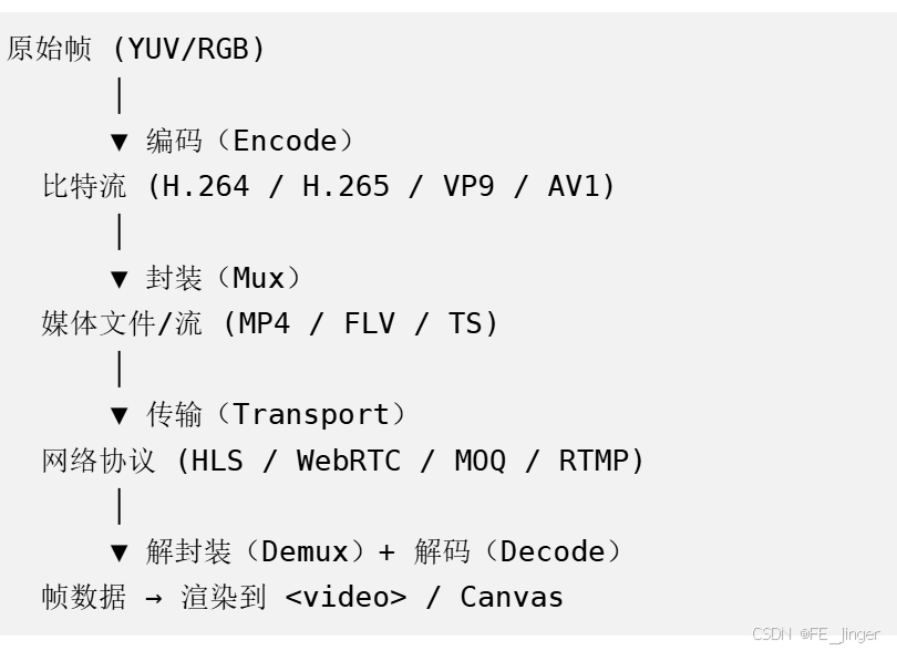 前端处理视频时,容器 是第一层,编码流 是第二层,帧数据是第三层,理解这三层的关系至关重要。