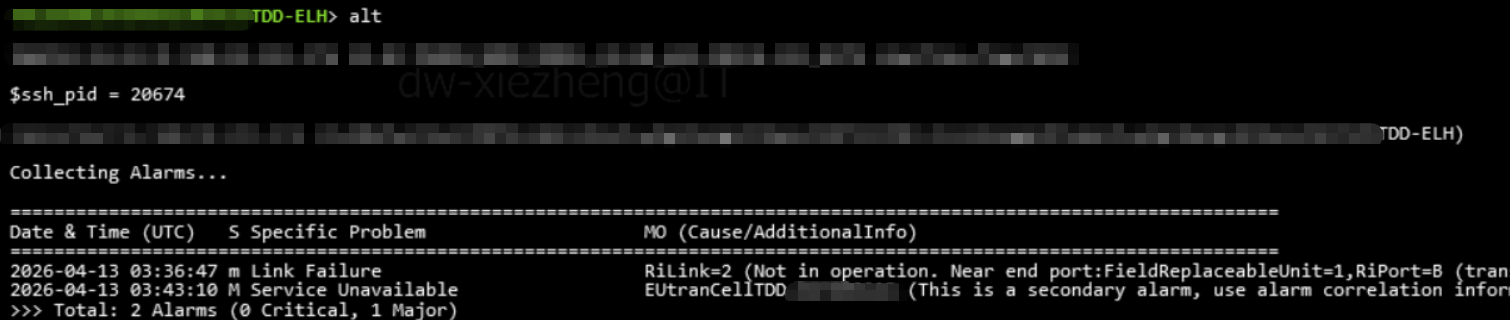 此类告警会反复上小区退服工单,白天严重影响用户感知。经查询,当前小区状态不可用,光链路连接失败告警。