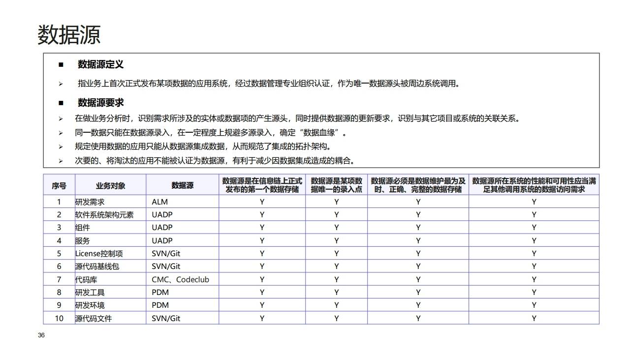- 数据源(Data Source): 定义数据产生的源头系统。原则是**"单一源头"**,即同一数据只能在源头录入,周边系统通过调用获取,以此规避多源录入导致的数据不一致。
