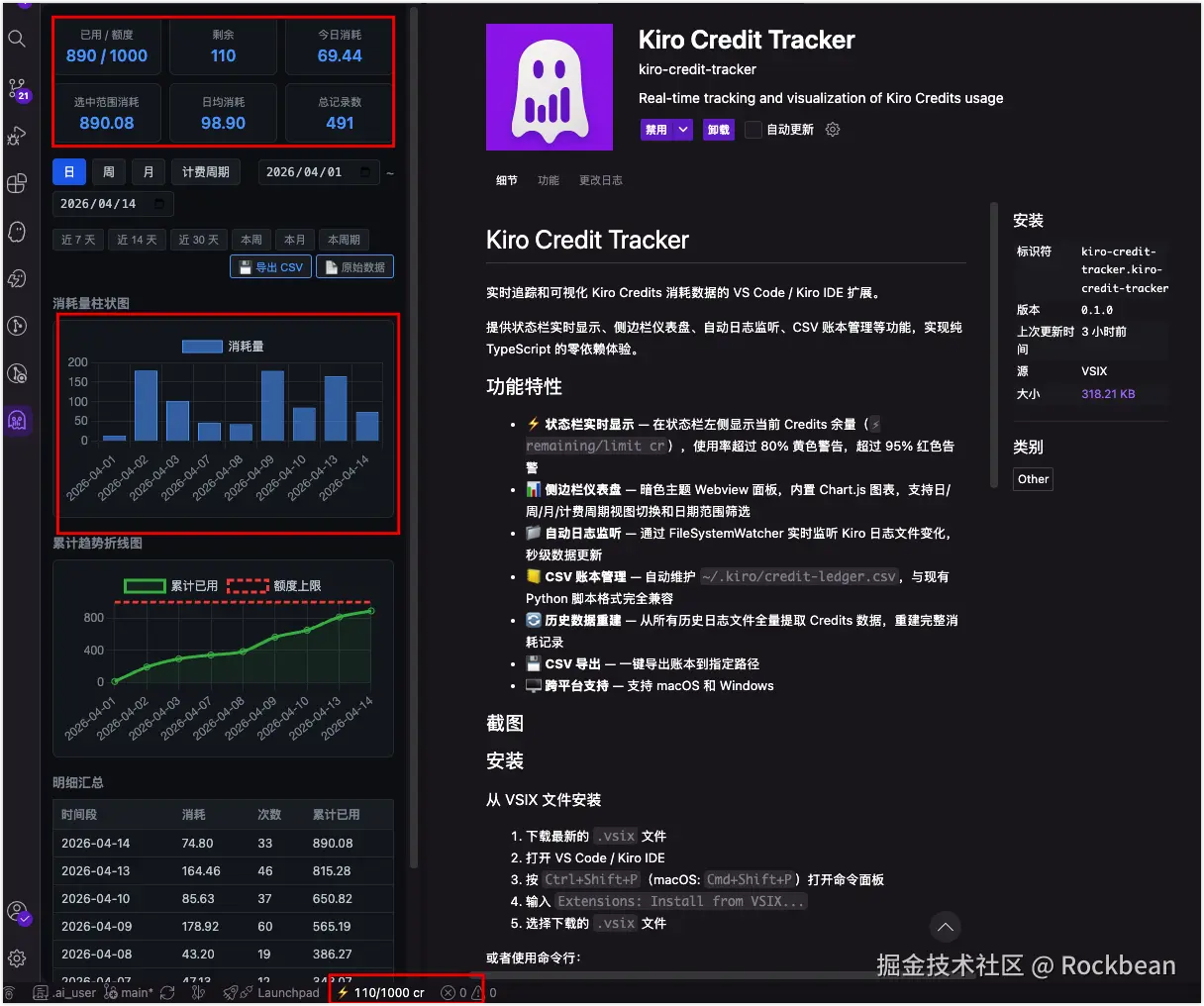 关键词:Kiro, AI IDE, Credit Tracker, Steering, Hook, agentStop, 消耗追踪, 可视化仪表盘, 自动记账