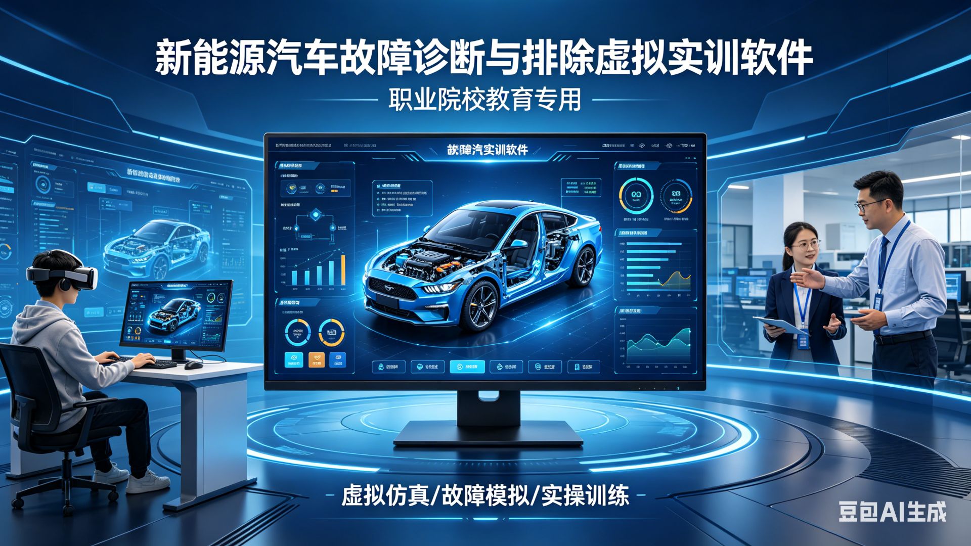 在新能源汽车产业蓬勃发展的今天,掌握扎实的故障诊断与排除技能已成为中职院校汽车专业学生的核心素养。然而,实车实训面临高压安全风险高、设备成本昂贵、教学组织难度大等现实挑战。如何让每一位学生都能在安全、规范、可重复的环境中反复练习?如何让教师在大班教学中轻松掌握每个学生的学习动态?**新能源汽车故障诊断与排除虚拟实训软件**应运而生,为职业院校带来一场理虚实一体化的教学革新。