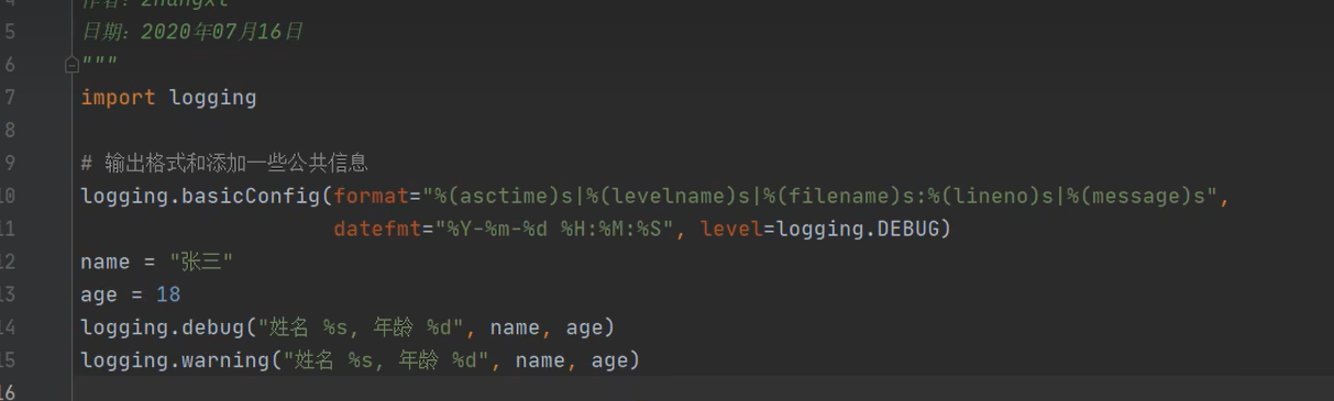 logging.debug("姓名 %s,年龄 %d","张三",19)
