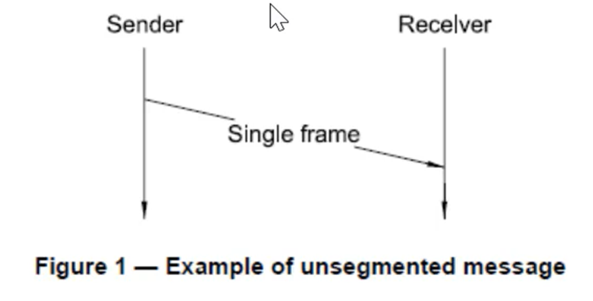 只传输一帧CAN报文(一帧N-PDU),称为SF,传输7byte(在正常地址情况下)数据字节的消息,byte0作为PCI使用。