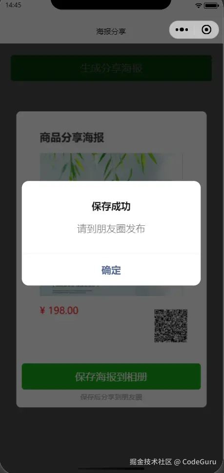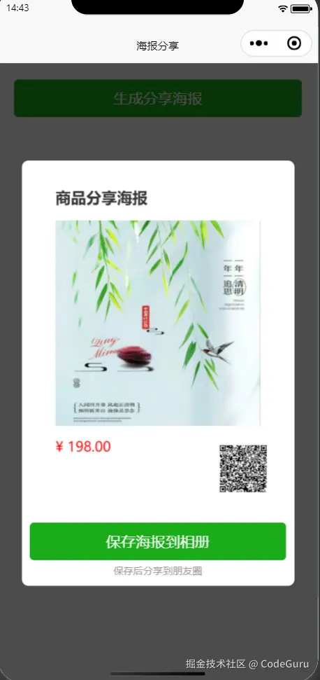 纯前端生成海报 + 保存到相册 + 引导分享朋友圈