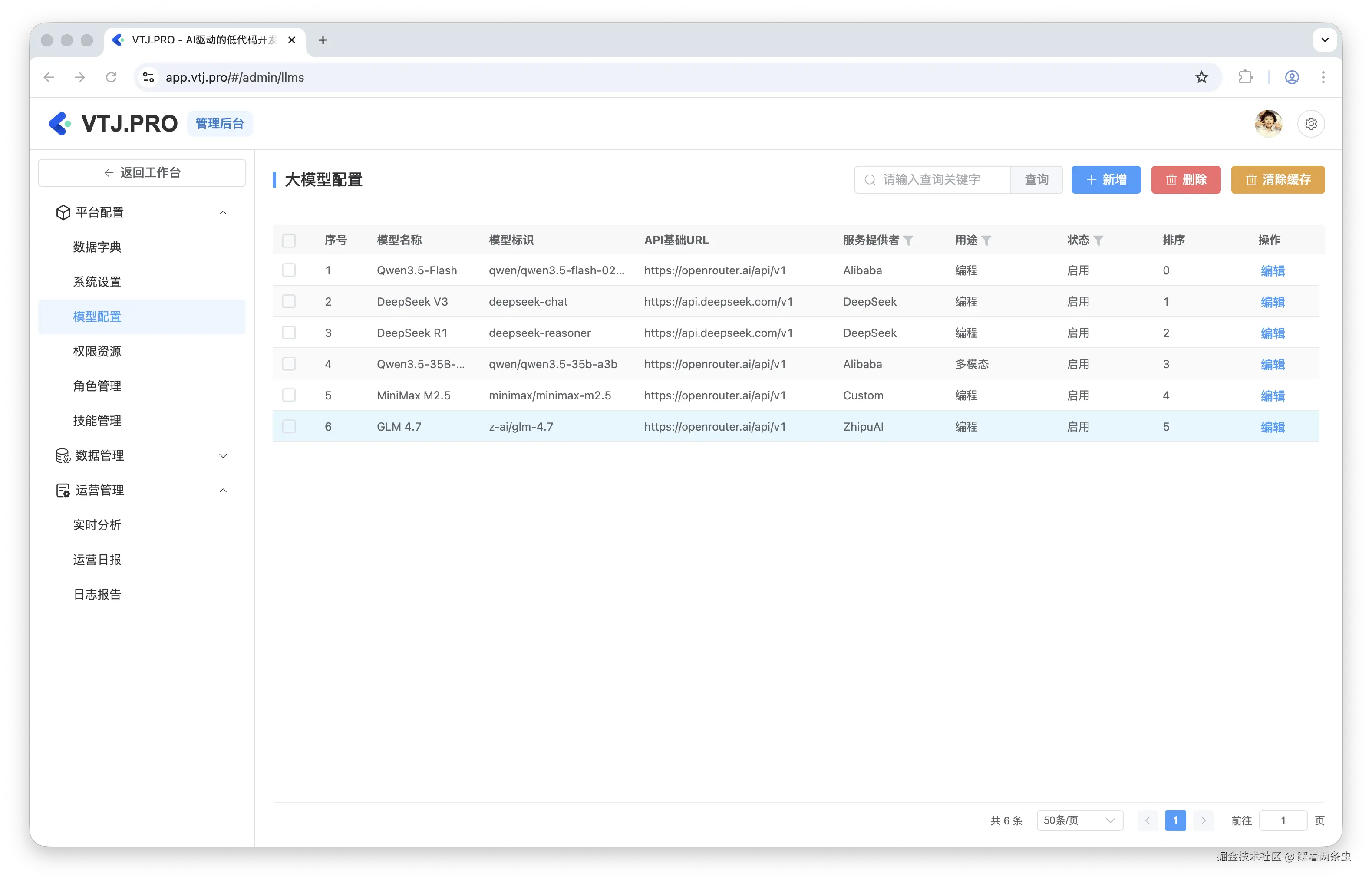 在后台的 llms.vue 页面,管理员可以: