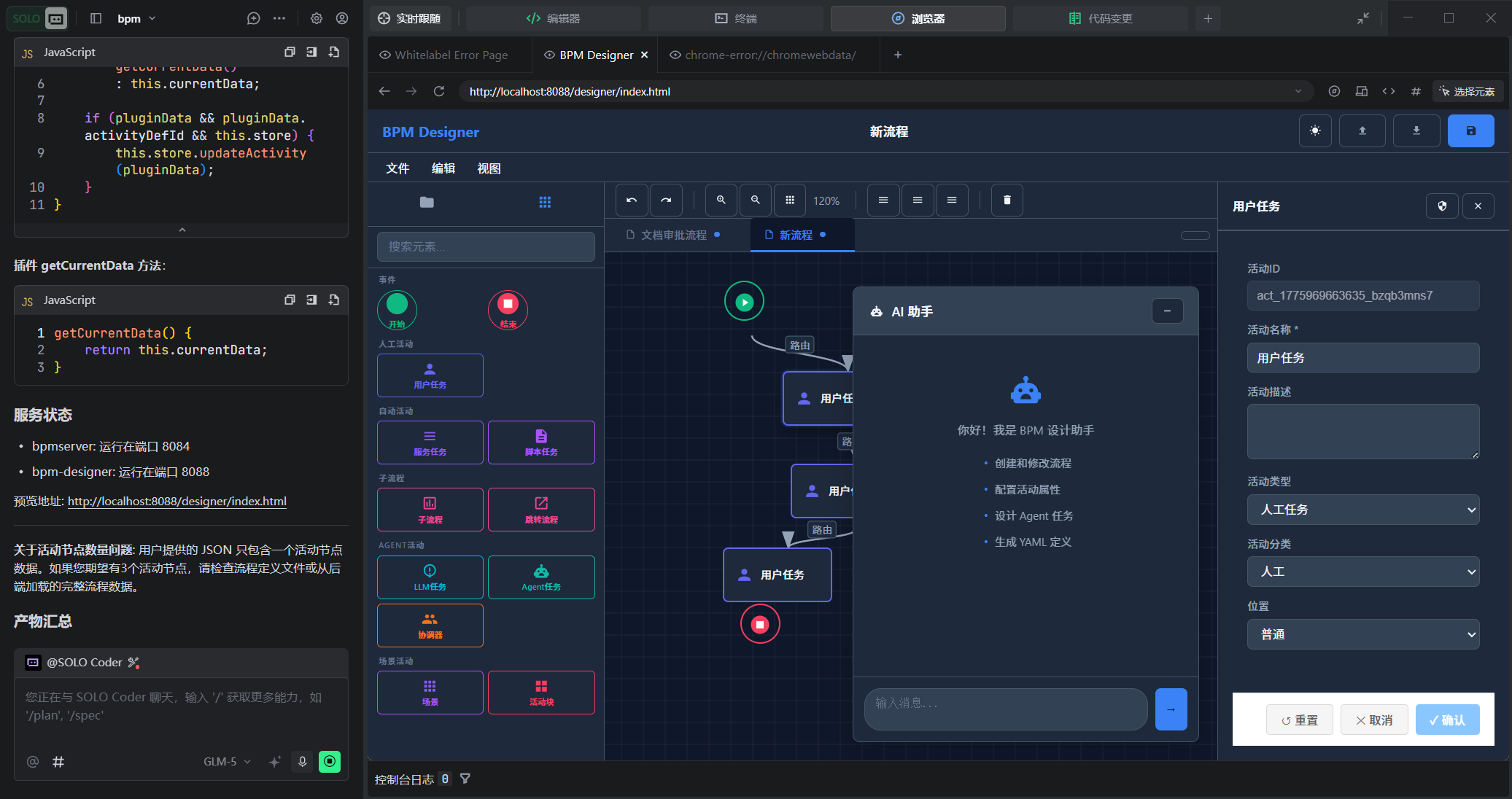 👤 我 :ooderAgent 需要 BPM 设计器支持 skills 架构,融合 LLM 能力,