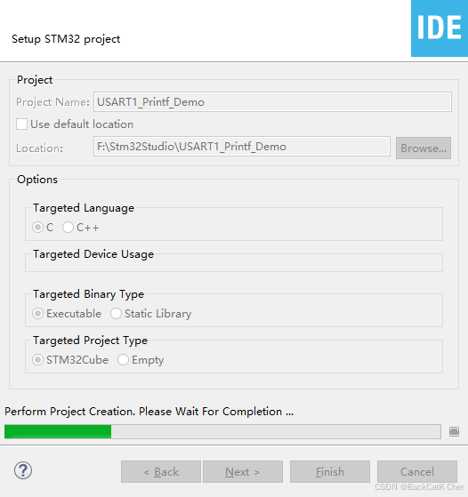 USART1_Printf_Demo),选择工程保存路径,点击Finish,等待工程创建完成