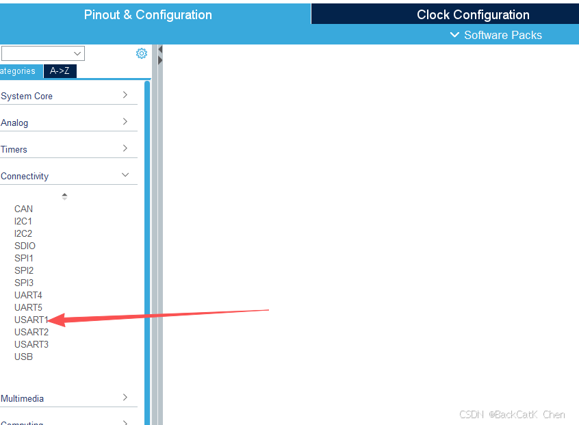 Pinout & Configuration→Connectivity→ 选择USART1