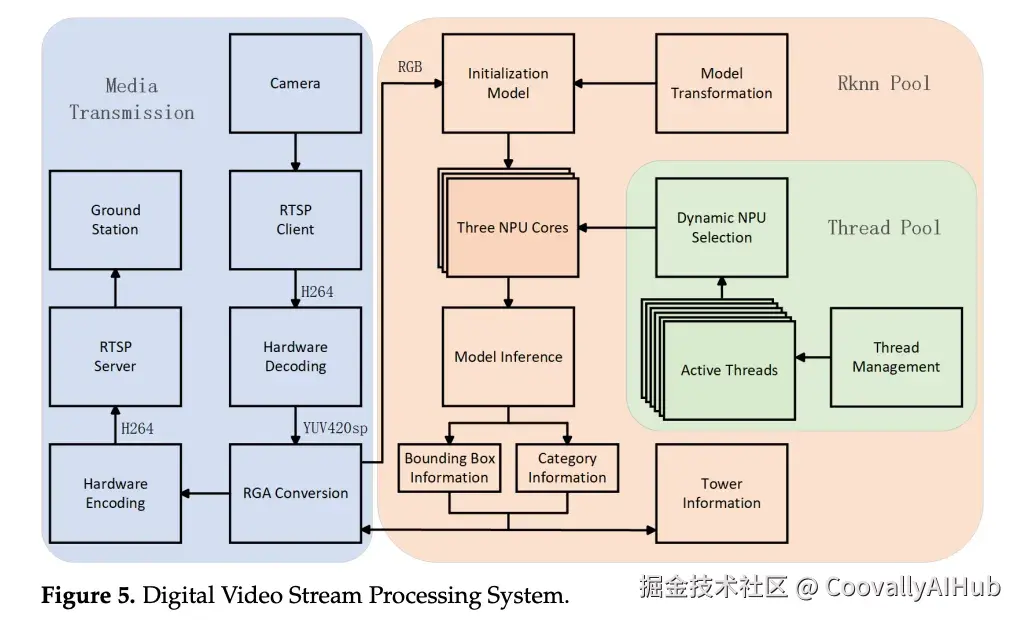 - DVSPS的通用性值得关注。这套NPU并行 + 异步线程池 + 硬件编解码的架构并不绑定于电力巡检场景,其他在RK3588上部署视频流检测的项目(如安防、工业质检)也可以借鉴。将单帧192ms压缩到36ms的5.3倍加速,更多来自系统工程而非模型本身,这类工作往往在学术论文中被低估。