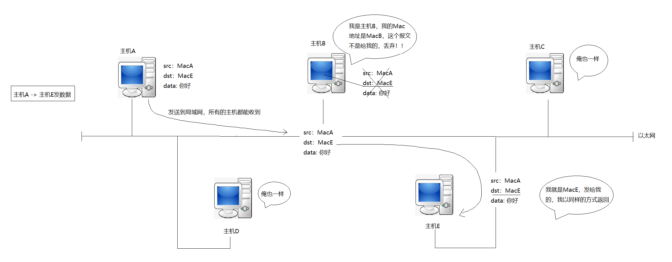 之前在介绍局域网通信时,有如下一张图: